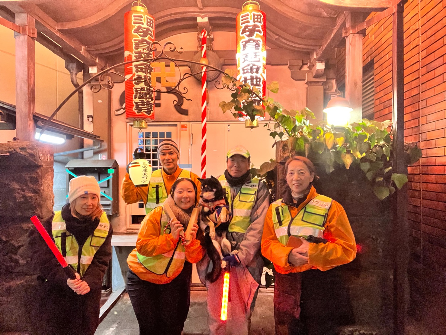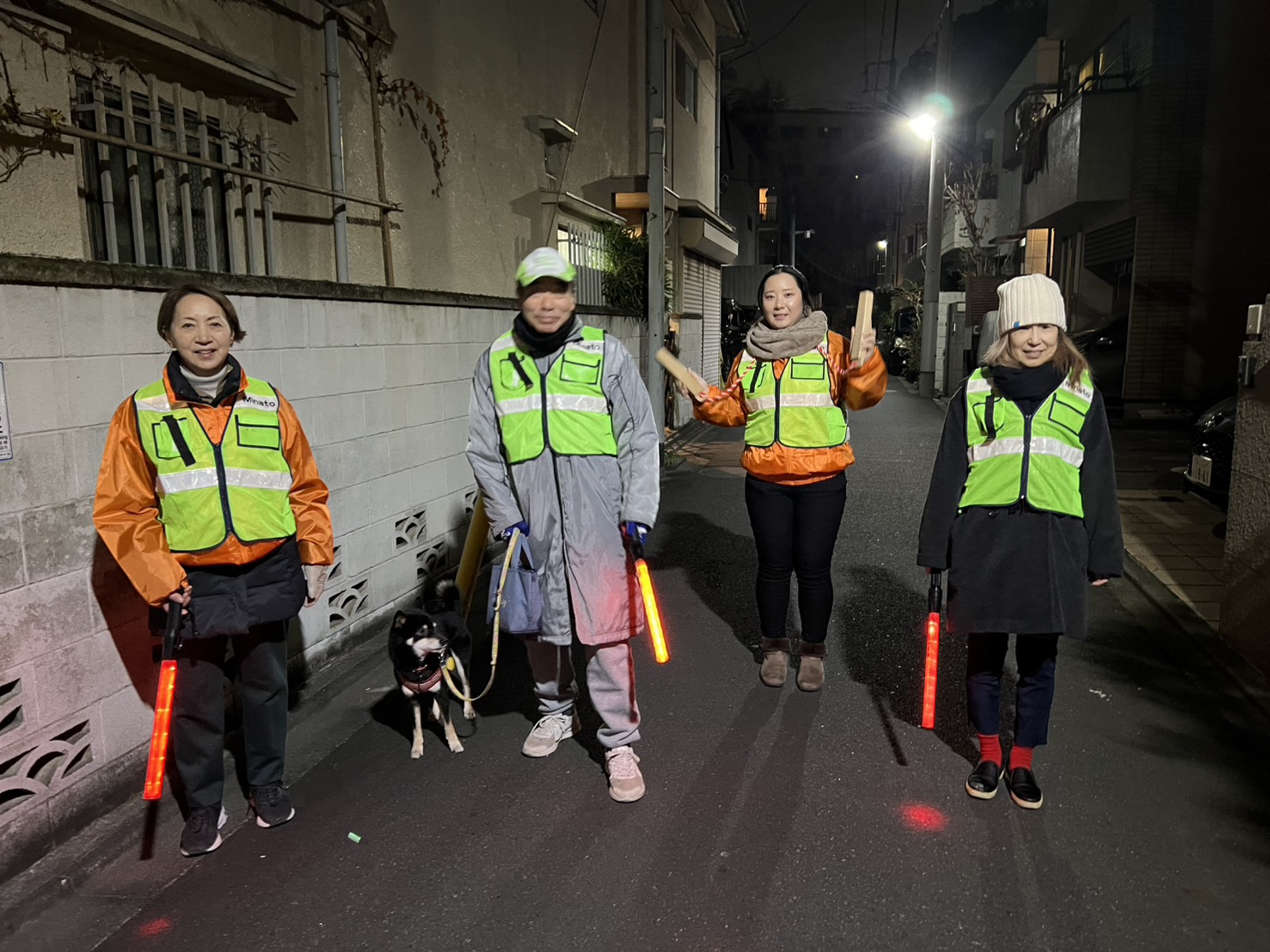 | 三田慶南町会では12月26日~30日の5日間を歳末警戒期間として、20:00より30分程度の夜警を実施しております。 12月25日には三田警察署・芝消防署による慰問巡察がありました。 |