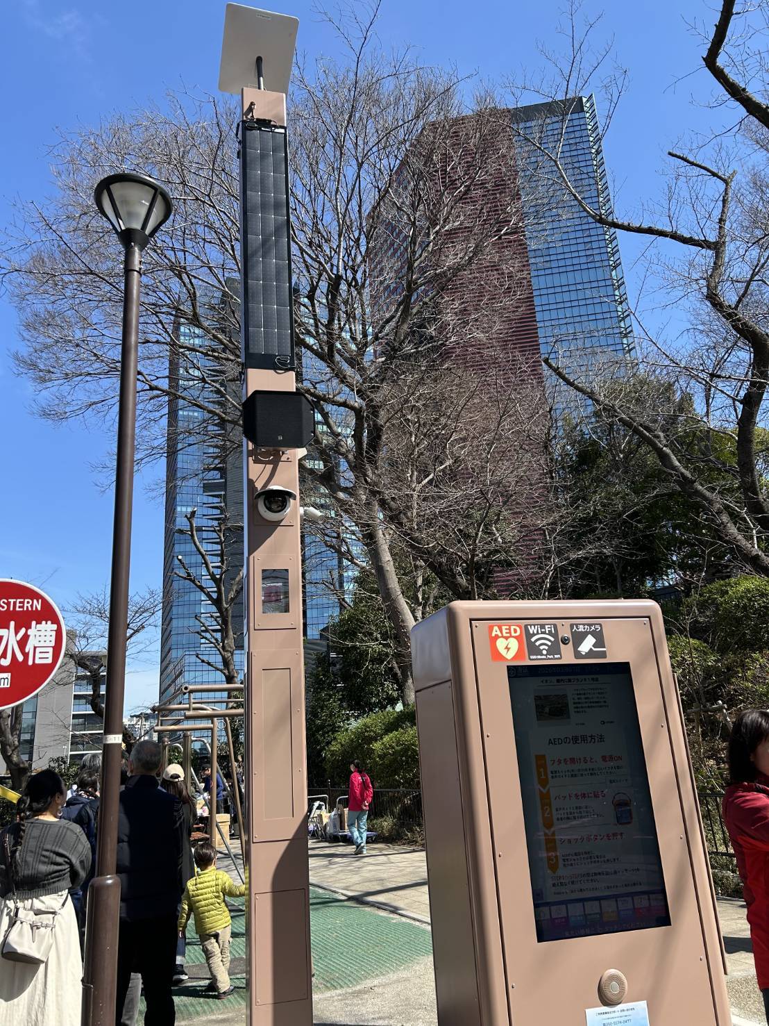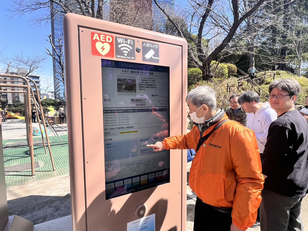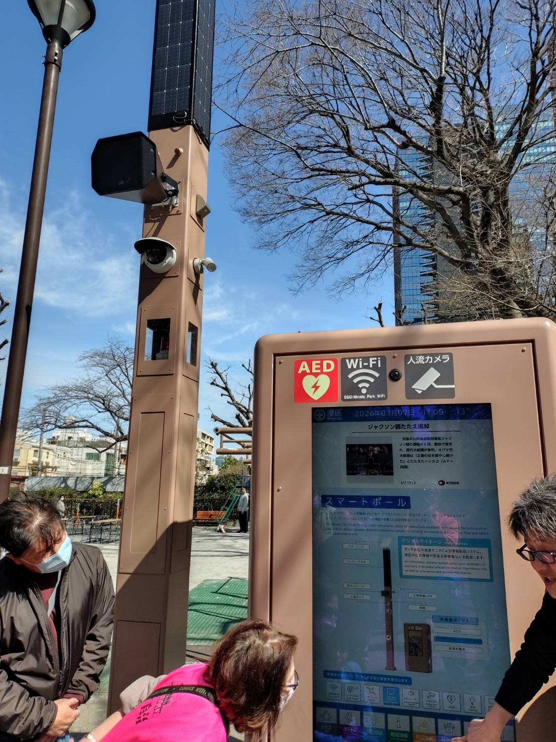 | 三田4丁目の亀塚公園にて、三田地区町会合同防災訓練が実施されました。 炊き出し訓練を兼ねた芋煮会や、公園内に新たに設置された「スマートポール」の説明会が行われました。スマートポール設置後は、公衆無線LAN、スターリンク、デジタルサイネージ、AEDがすぐに利用可能になるそうです。 |